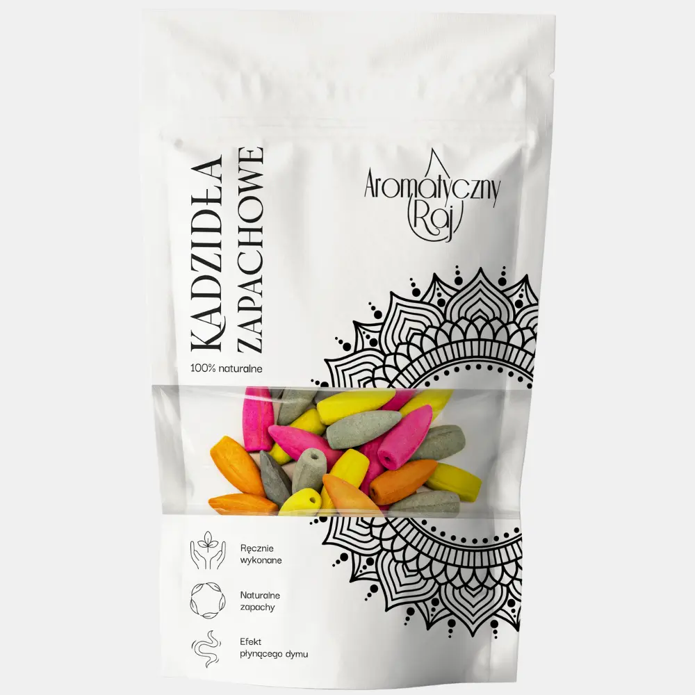 Stożki zapachowe tworzy się poprzez sprasowanie drobno zmielonych składników zapachowych w formę stożka. Dzięki wysokiemu stopniowi sprasowania uwalniają intensywny aromat, co sprawia, że doświadczenie ich używania jest znacznie bogatsze niż w przypadku klasycznych kadzideł. Unikalna konstrukcja sprawia, że dym spływa od dołu kadzidła, tworząc hipnotyzujący efekt kaskady. Dzięki temu nie tylko wypełniają przestrzeń intensywnym aromatem, ale także dostarczają wyjątkowych wrażeń wizualnych, które sprzyjają relaksowi. Są idealne, jako kadzidła do medytacji wprowadzając odpowiedni nastrój.