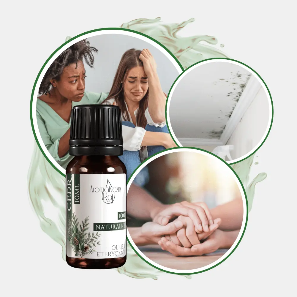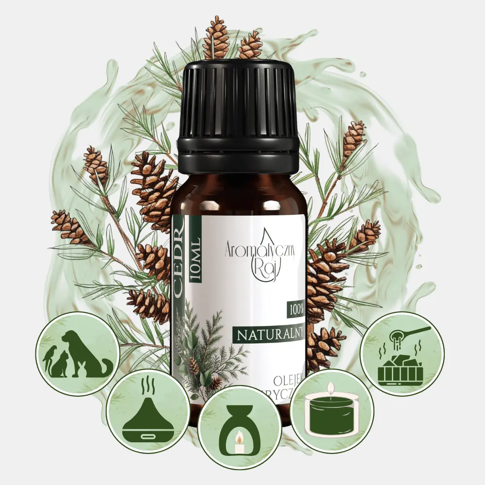 Naturalny olejek cedrowy pomaga wyciszyć umysł, redukując napięcie i stres. Jego głęboki, drzewny aromat sprzyja relaksowi i poczuciu bezpieczeństwa w domowym otoczeniu.