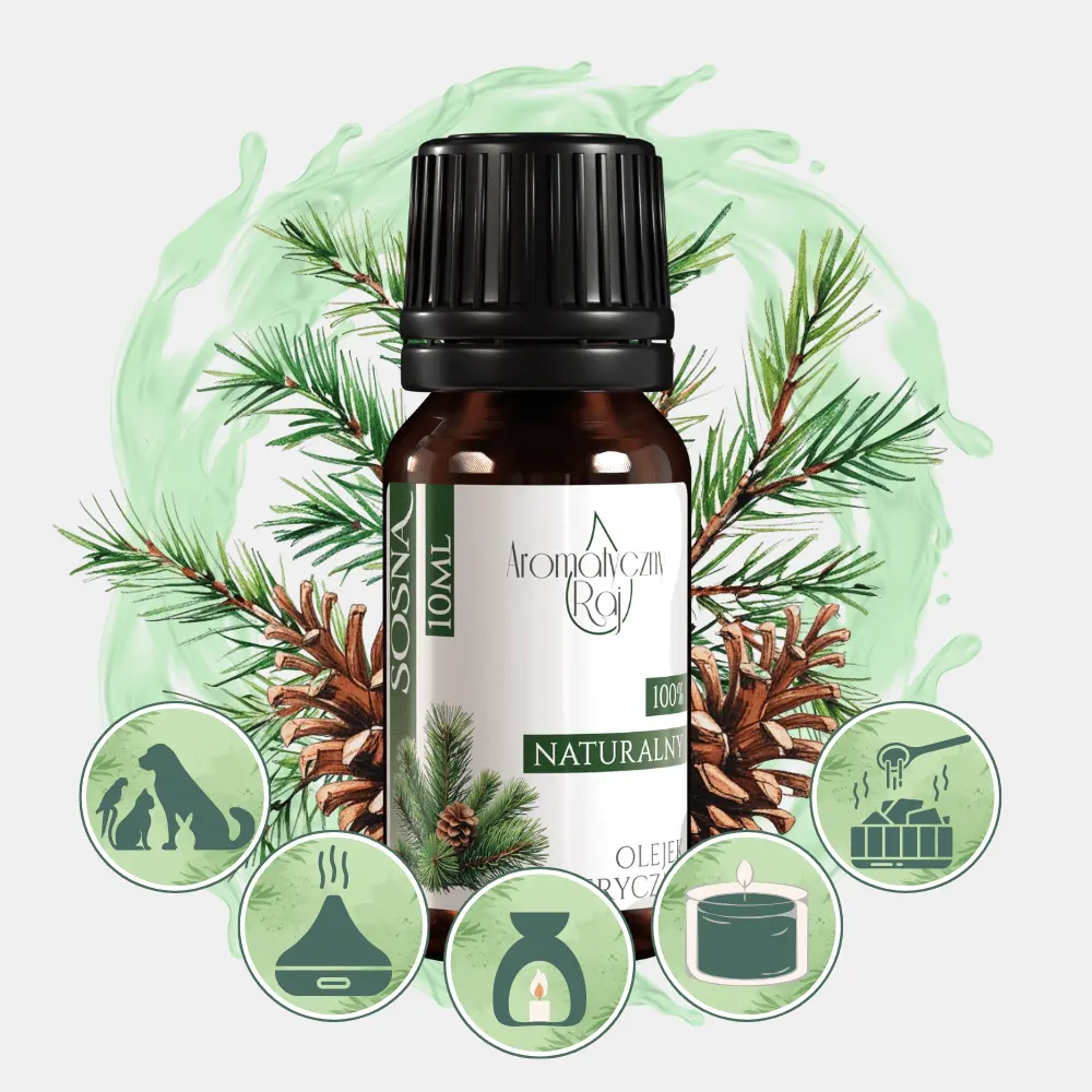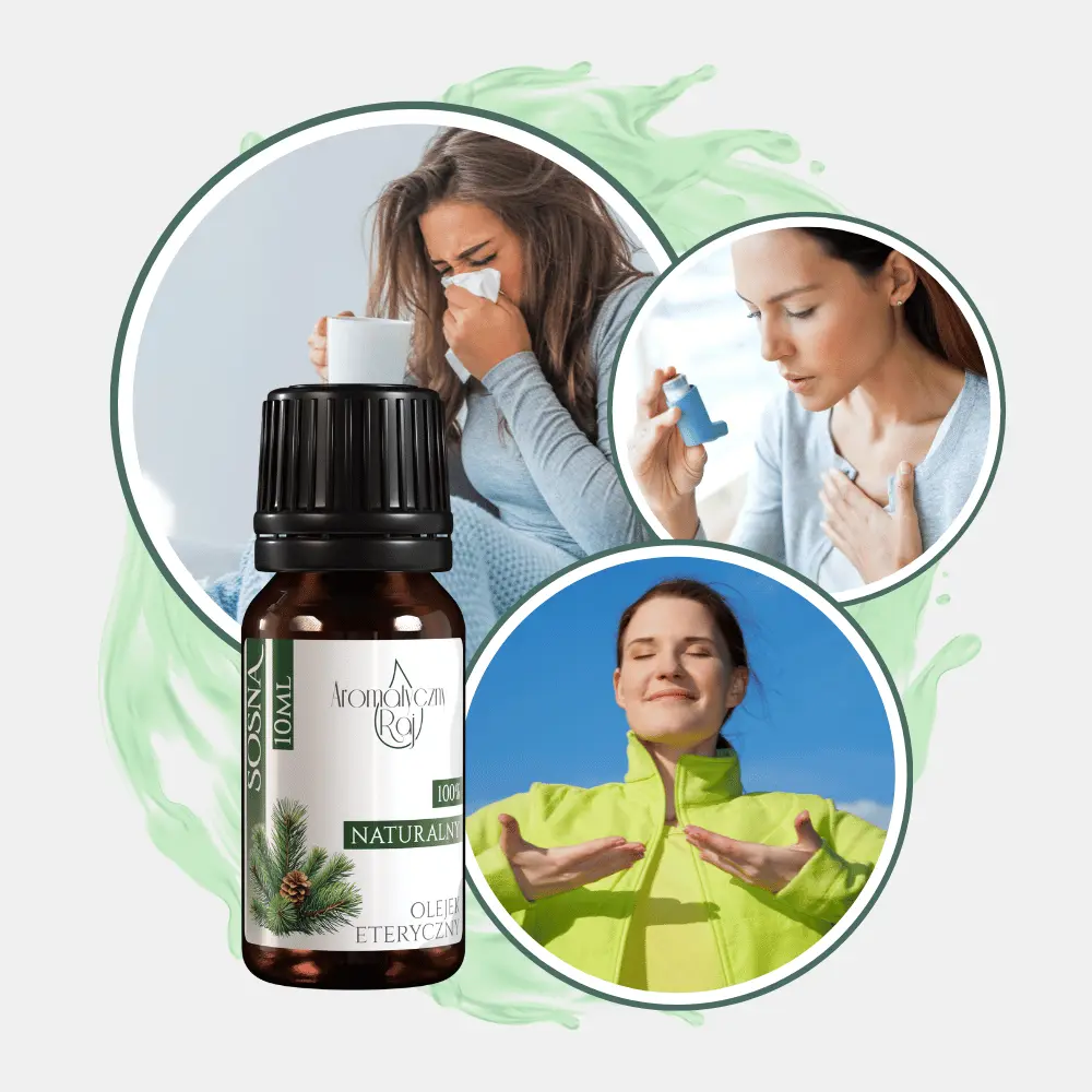 Aromat sosny dodaje energii, poprawia nastrój i wspiera zdrowie układu oddechowego. Stosowany w aromaterapii pomaga udrożnić drogi oddechowe i poprawić komfort oddychania.