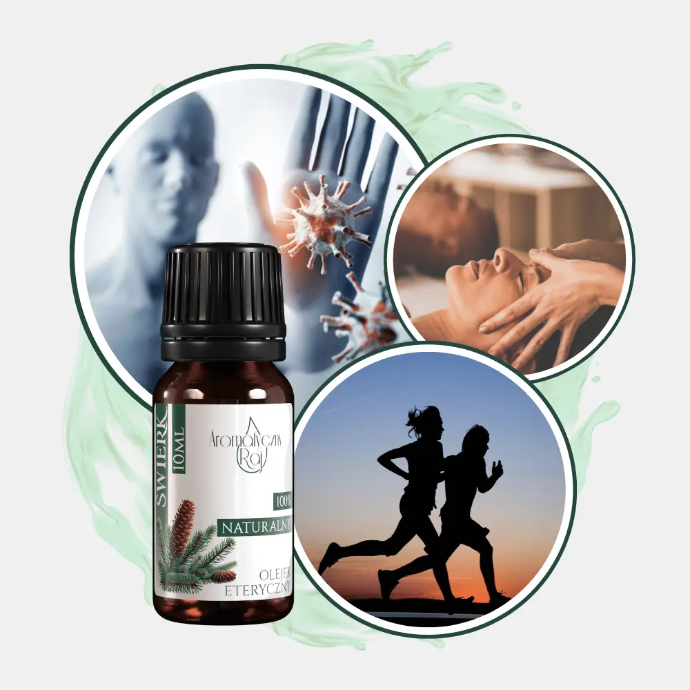 Naturalny olejek świerkowy wspomaga drogi oddechowe, ułatwia oddychanie i oczyszcza powietrze. Jest doskonałym wyborem w okresie przeziębień oraz przy problemach z zatokami.