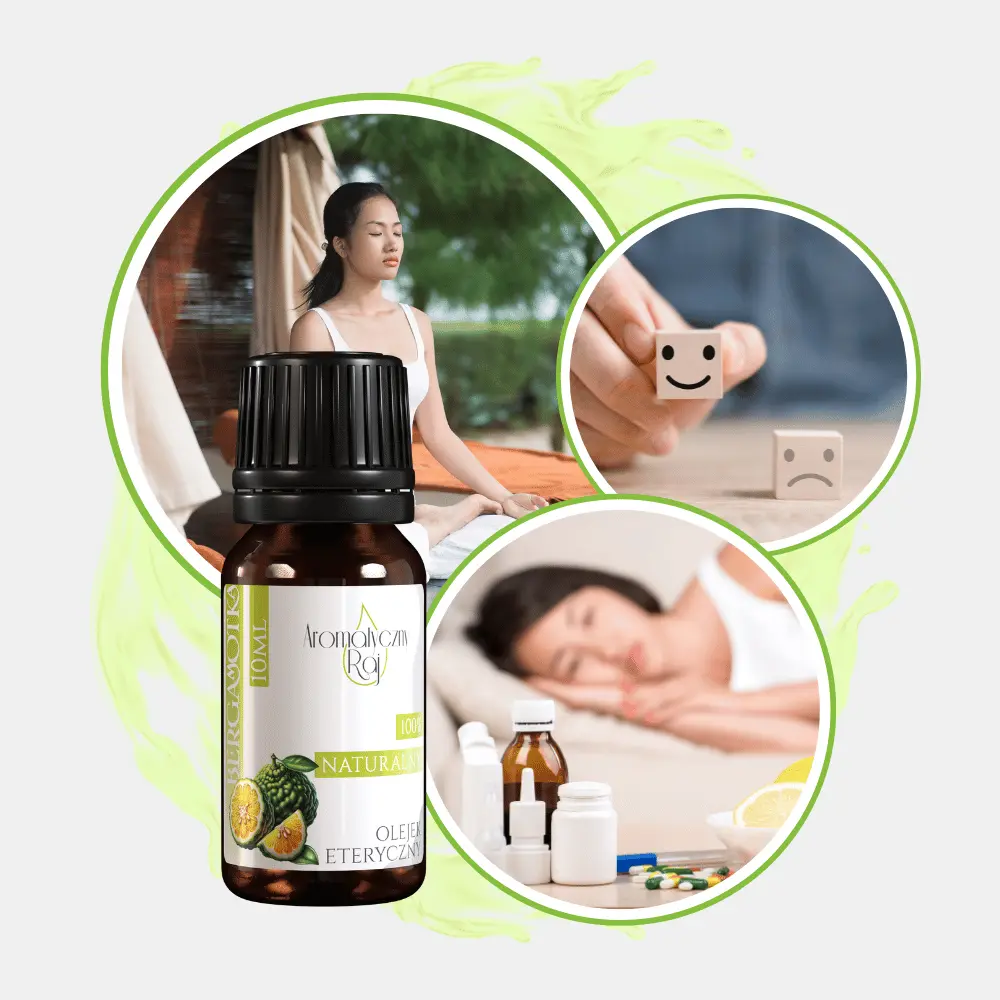 Szukasz wsparcia w walce z napięciem i bezsennością? Olejek z bergamotki działa uspokajająco, pomaga się wyciszyć i ułatwia zasypianie. W aromaterapii jest ceniony za zdolność łagodzenia stanów lękowych i wspierania zdrowego rytmu snu. Kilka kropel w dyfuzorze przed snem stworzy atmosferę spokoju i harmonii, sprzyjając regeneracji organizmu.