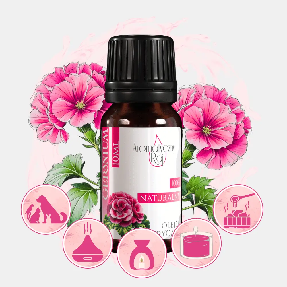 Dodaj sobie energii od pierwszych chwil poranka dzięki orzeźwiającemu aromatowi naszego olejka z geranium. Naturalna kompozycja pobudza krążenie, poprawia nastrój i motywuje do działania. Idealna do dyfuzora, w pracy lub w domu – odświeża powietrze, oczyszcza umysł i wspiera aktywność fizyczną oraz umysłową.
