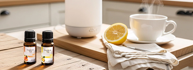 🌿 Olejki takie jak tymianek, eukaliptus, drzewo herbaciane, cytryna.